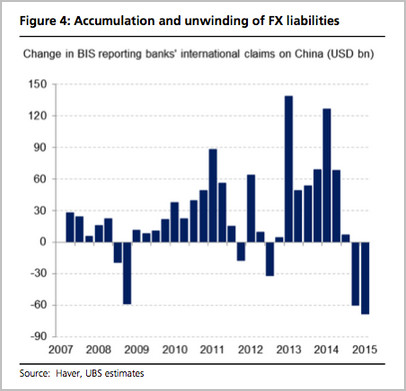 瑞银首席中国经济学家陶冬也表示赞同:国内实体偿付早前的外币债务、 结清“套利资本流入”是最近大规模资本外流的重要原因。在2014年第二季度之前的几年中,尤其是在2013年多数时间和2014年初,人民币升值预期强劲,且国内外息差很大。因此,国内实体迅速积累了大量外币债务, 部分通过离岸借债方式获得。中国的短期外债迅速增长,根据国际清算银行的数据,从2012年底到2014年第一季度,外国银行对中国实体的国际声索增长了4400亿美元。