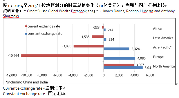 报告指出全球财富总值自2014年年中起至2015年年中减少12.4万亿美元(按当期币值计算),至250万亿美元,跌幅为4.7%。主要是美元兑其他主要货币升值,抵销了财富正面的基本走势。