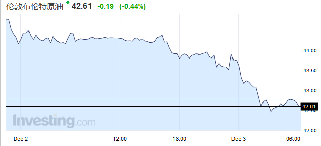 布伦特原油收跌1.95美元,跌幅达4.4%,报每桶42.49美元,盘中低见每桶42.43美元,仅比8月触及的六年半低位高0.2美元。布伦特油价已经从8月31日的收盘高点下跌超过20%,达到通常意义上的熊市。