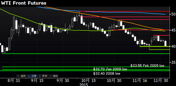 美国原油一度跌破40美元