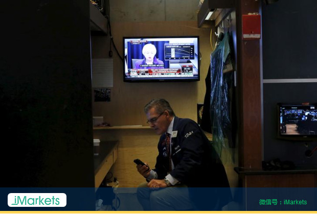 交易员观看美联储主席耶伦记者会
