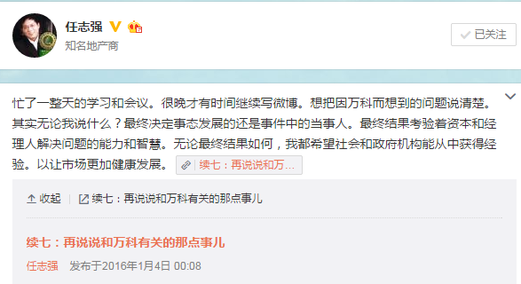 任志强两天连发6文:万科那点事绝不是宝万之争