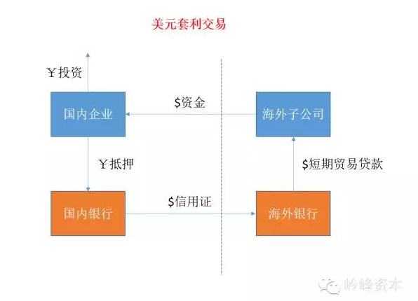 几年前,我在读某造船企业的年报时发现了明显的异常。这个公司的理财投资占了60%以上的利润,已经超过了造船主业。资产负债表上价值高达百亿人民币的大量境内理财信托投资靠的是大量境外美元贷款支撑。企业在国内抵押一部分人民币,获得全额的美元信用证,相当于获得了金融杠杆。企业的海外子公司凭借母公司在国内银行开出的美元信用证担保,从海外银行获得短期美元贸易贷款。然后海外子公司把获得的美元资金以各种方式汇入国内,提供给母公司在国内投资获利。