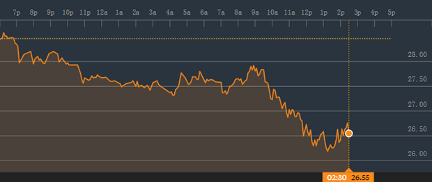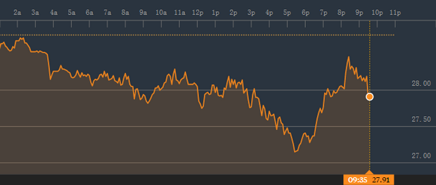 3月布兰特原油期货跌0.88美元,或3.06%,结算价报27.88美元,盘中跌至27.10美元的合约低点。