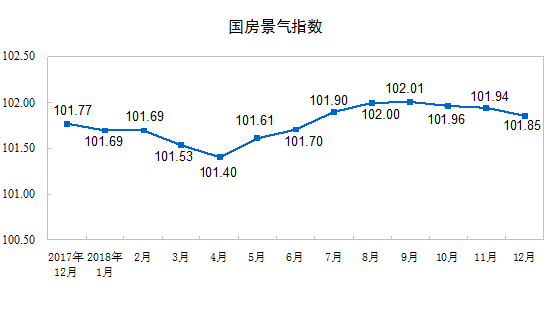 12月份,房地产开发景气指数(简称“国房景气指数”)为101.85,比11月份回落0.09点。