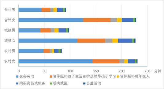 图2 分城乡、分性别的居民无酬劳动时间情况